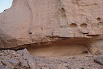At the edge of the broad valley leading to Qzanehare we passed the sites of Rayaye, a pace we did not visit since October 2011. Most of the sites here are of a relatively late period, and there are a number of painted spirals, very similar to the engraved ones at Wadi Djerat. We reached Ozanehare by midday, settling in to a series of shallow shelters at the base of the cliff.