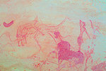 The rocky region between In Itinen and Ouan Dearbaouen is known as Ouan Assakemar, in 2009 Bernard Feuilleux found one of the panels copied by Lhote there, a few hundred metres from the easternmost In Itinen sites (to make life easier, I have used In Itinen site designations for this cluster of sites to match Lhote's areas). The panel depicts a number of very unusual spotted cattle or perhaps aurochs which do not resemble any other paintings in the broader area.