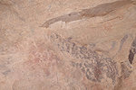 A few hundred metres further among the rocks there is a very little known but spectacular Roundhead style shelter which was reported by Jacques Serpion (Sahara 6, 1994) as Ouan Serchamar, but without any meaningful information on its location. Presently most guides are unaware of it, as was Henri Lhote, there are no copies even though several other sites were recorded a few hundred metres away. The most interesting feature is certainly the number of depicted fishes along the more usual animals.