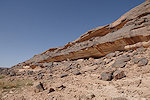 After the guelta we took the camel pass leading out of the valley, about half-way up we encountered a slab that was full of trace fossils of a type that resembled Arthropycus but lacked the characteristic ribbing and the converging tracks.