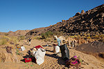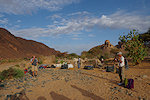 Our plan was to spend three nights at Ouan Segofar, to provide some time for any wildlife (primarily gazelles) in the area to relax after the disturbance caused by the cars. The daily routine was to be the same all along the trip, with Cornelius and Ugo, sometimes accompanied by Koen, going out before dawn to some suitable spots (preferably gueltas), and also do the same mid-afternoon till dusk, with any traverse to be done in-between if possible. With the late arrival the day before the cars stayed with us overnight, after the naturalists were back from the morning sortie we made the climb to the big shelter of Ouan Segofar (Ochi had not seen it before either).