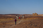 In the morning we continued along the road which led generally towards the north along a broad valley. After about four kilometres we reached the point where we needed to turn east into a wadi heading towards Abarkakou, our target. There was a sandy pass leading down into the valley, our camels just caught up with us so we allowed them to pass first, making sure that they all reach the bottom without any mishaps.
