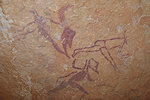 The other two turned out to be more difficult, finally Fenny found some traces of paint on a wall quite far west of where it was marked, and after a lengthy search we did find the fourth one, a fine but very faint group of humans, again quite a bit offset from the marked position.