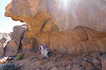 As we descended to camp for lunch and some rest, Abu Bakr awaited us with the news that he found another site right at camp. Sure enough, there were a couple of faint human figures on the wall right behind where our crew were resting.