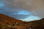 While we were exploring dark clouds moved in, and we did get a few large drops of rain that made everyone scramble to cover the bags and supplies the best we could. Fortunately the bulk of the shower missed us, and soon just a big double rainbow indicated that there was rain high up that never reached the ground.