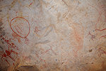 Mike, with his knack for tight places, checked out a very low shelter, and much to our surprise he found some human figures on the ceiling. There was also a panel of paintings in a prominent shelter nearby, apparently the Lhote team decided they were not worthy of copying as they would have been impossible to miss.