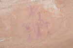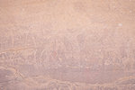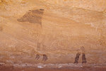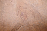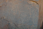 I spent a substantial amount of time checking the walls along both sides of the "street" leading to camp where supposedly there was a scene of three large figures very reminiscent of the three walking figures at Tin Abenhar. I did find the scene of two figures with "Pompadour hats" that I missed before, and after repeated passes through both sides I finally found the three extremely faint figures just around the corner from camp.