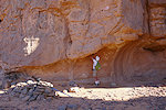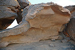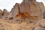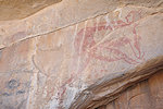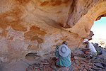 We reached Ouan Bender about two hours after starting from camp. Once arriving at the central area we stopped to photograph a number of known sites, while Abu Bakr wandered about, and within 10 minutes came back announcing that he found a big site which we did not see the year before - it turned out to be Bernard's site we were looking for, a good 80 metres from the indicated point in a completely different "street". Naturally a lengthy photo session followed, with a number of unique roundhead depictions at this shelter.