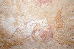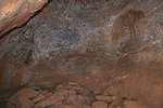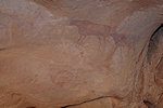 It was still only mid-morning, and our departure was only due after lunch, we were not ready to give up that easily. With Peter we returned to the northern cluster, where there might have been some gaps in our search. The hunch was right, not far from the large damaged cattle herd I found a small shelter with one of the missing scenes on the ceiling. Peter also recalled that he thought he saw something other than I did in the shelter found by Fenny, we went to check and indeed that too turned out to be another of the Lhote panels.