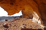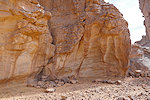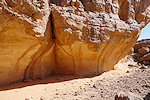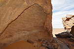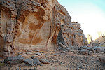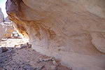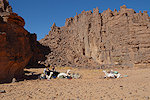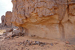 We made camp along the bank of the oued after the In Djoua shelter where a low scarp offered some afternoon shade. There was a big guelta in a nearby tributary, and also several large shelters to be checked out along the cliffs of the wadi. After the midday rest we dispersed, but none of us seemed to have any luck, there were no animals and all the shelters were empty.