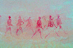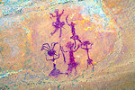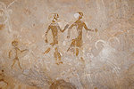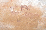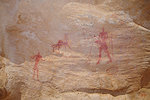 On our way back to our camp at Tissoukaï we passed three small unreported sites at the southern extremity of the area which we noted already in the morning, but then they were exposed to the sun and unphotographable. One of them contained a remarkable scene of running therianthropes, strangely not copied by the Lhote mission despite being right next to two sites that were.
