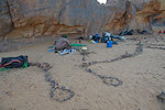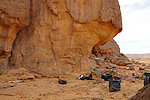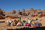 In the morning I made the usual shopping round for supplies at the local market, while the rest of our party made a quick visit to the engravings and paintings reported by Reygasse and Lhote near Azelouaz. After sorting and packing our supplies and gear we drove about 20 kilometres to the North to the campsite where the camels were already awaiting us for an early start the next morning.