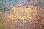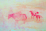 It was approaching sunset, we needed to move towards camp. Bernard's last position was at a rock towards the southern edge of the northern cluster, as we walked towards it we found two more sites, one the fine panel of gazelle, ostrich and hunters copied by Lhote, the other a minor unrecorded site with some undecypherable Iheren style scenes under more recent cattle. The final site marked by Bernard had mostly caballine scenes superimposed over very faint earlier figures, recorded by Lhote.