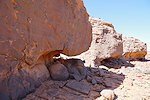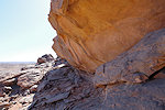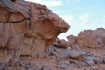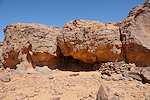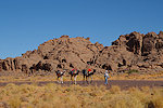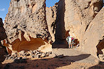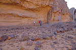 Our camels passed us as we were photographing the site, continuing to the agreed midday resting place. We soon followed, catching up with them in about an hour in the shade of a large rock tower. Poor Kent had been limping with a bad blister for several days, finally this time we could convince him that as there will be no sites along the rest of the way, he might as well mount a camel for the afternoon, a spare having been with us all along for just such an occasion. After lunch we continued for most of the afternoon, reaching camp in the southern valley of Ouan Agouba (also called Tin Tartaït) about an hour before sunset.