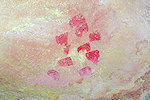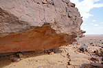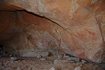 In the morning we continued with our search of the likely sites among the rock outcrops. Right at the first location we found a cluster of three shelters in a closed-off "street" all of which contained traces of paintings, one of them a large panel of hard to make out roundhead figures with numerous superpositions.
