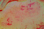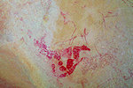 There was just one remaining identified enclosure a hundred metres further, here too there was a high wall forming a shallow shelter, this time we did find some very faint traces of white and red paint, but the individual figures are almost impossible to make out.