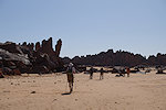 We had six kilometres to go till the Dider plain. Along the way we took our group photo, then continued down a series of low escarpments towards the Dider plain, reaching it roughly opposite the engravings of Tin Terirt. We reached the rendez-vous point early, we had to wait a good two hours for the cars to arrive.