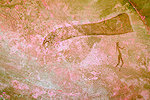 On a rock not far from here we found another large known site, a complex panel with a small hippopotamus and many other figures along the wall of a shelter under a large rock.