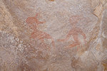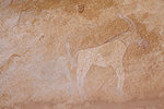 The first sites we encountered along the edge of the wadi were also not very exciting, some camel period and very faint pastoralist paintings, not the splendid roundhead scenes we were looking for based on the Lachauds' publication. While we were checking the shelters Cornelius caught up with us, he did manage to get a few distant but good shots of what turned out to be a herd of five Dorcas gazelle.