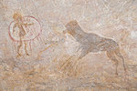 With practically every rock surface checked in the northern cluster, we returned to the southern one to do the same. Time was pressing as we promised to be beck in camp by noon for lunch and to pack. As we were about to give up and leave, I checked one last area enclosed by rocks facing the way to camp which I did not enter before, and the chariot and mouflon was right there in the corner, we must have passed right by dozens of times.