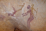 We walked to the very end of the area, where the terrain drops towards a big basin towards the east. Overlooking the edge of the basin there is a cluster of rocks with paintings on both sides of the largest one. The better preserved panels (site TS 120) were copied by the Lhote team.