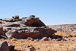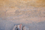 We reached the rock outcrops of Irrekam n'Oudi by midday, stopping at the same place for the midday rest. This gave me the opportunity to take better photos of the very damaged shelter nearby, where last time I noted an interesting giraffe butchering scene. Unfortunately the scene is so faint that once again I managed to cut the head of the giraffe from the close-up photos.