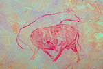 Continuing to near the northern end of Rhardes, we found a very impressive large shelter in a walled-off "street", which however turned out to be disappointingly empty. On a low wall on a rock just beyond the shelter I did find some practically invisible traces of paint, I took some point blank shots. Back home it turned out that this panel was one of the missing Lhote relevés, a fine Iheren style herd of cattle.