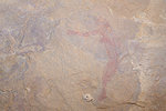 On the far side of a large rock outcrop Barbara and Mike found another site which was not marked on the map, with an intriguing roundhead style animal and some figures of a style which we have not seen before at Tissoukaï. Here too there was a large semicircle of stones placed in front of the shallow shelter.
