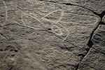 We moved towards the western edge of the rocks, to site TS 5 where earlier in a very bad light I have missed details of a number of important scenes, including a good overview of the roundhead style figures with "antennae".
