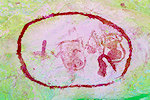 To finish off the morning I moved to site TS 93, within sight of camp to the north, to find the panel of strange animals (Lhote called them pigs) which were clearly marked to be at that site. Taking a very careful look at the wall I finally found the very weathered traces (and I realised why I missed them before), even DStretch does not help much.
