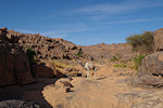 The remainder of the morning was spent walking along the easy trail towards the foot of the pass, passing a guelta where we could top up our water containers. My midday we reached the small plain just at the foot of the main pass, leaving the ascent for the afternoon after lunch and a midday break.